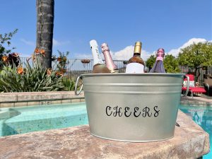 Create a DIY personalized beverage tub using some spray paint and adhesive letters, it’s the perfect way to update an old tub! These ice buckets are the perfect way to keep your beverages cold indoors and outdoors.