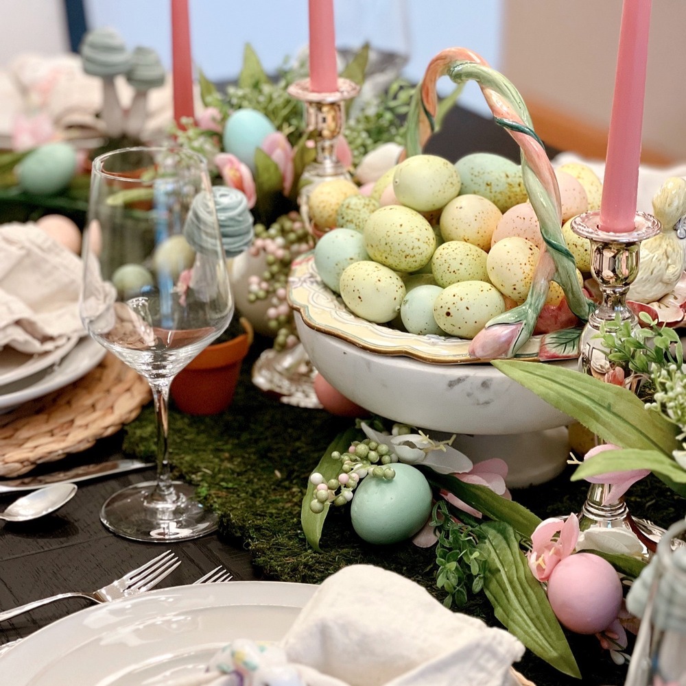 You will most likely need to prop the eggs up somehow. I used moss for a spring feel.