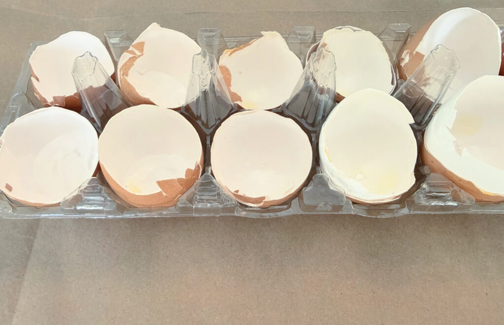 Start by cracking the pointed end of the egg. This gives you a natural opening that’s just the right size for planting. Pour out the raw egg, rinse the shell, and let it dry completely. With only three of us at home now, we don’t go through as many eggs.
