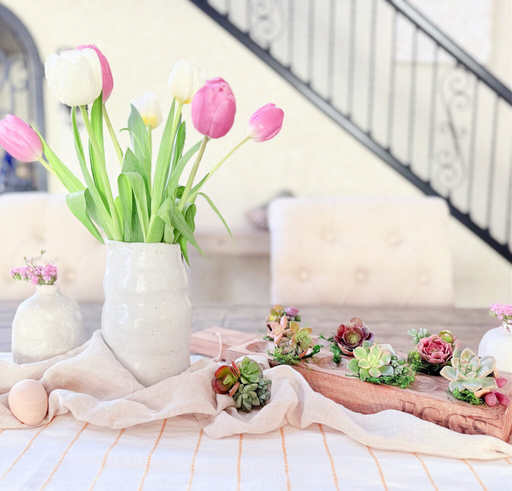 Celebrate the fresh start of spring with the sweetest little succulents planted inside eggshells. Perfect for centerpieces, place settings, or a beautiful gift for loved ones. We had the most gorgeous weather a couple of weeks ago, followed by days of rain, and then—just like that—the sunshine returned. That little burst of spring was all it took to inspire me to create a fresh seasonal project and bring some new life into our home. There’s just something about flowers that instantly lifts my mood and makes everything feel brighter.