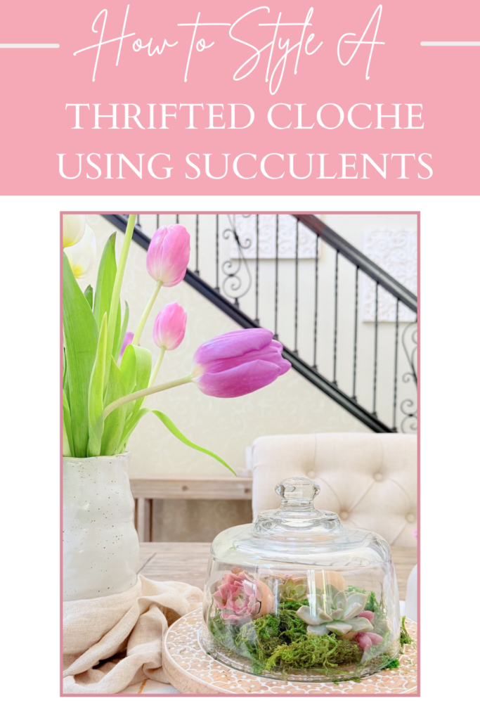 While in Santa Cruz last November visiting my son at college, we went thrifting (our favorite thing to do) I came across some glass cloches, one of them caught my eye and I couldn’t wait to bring it home.