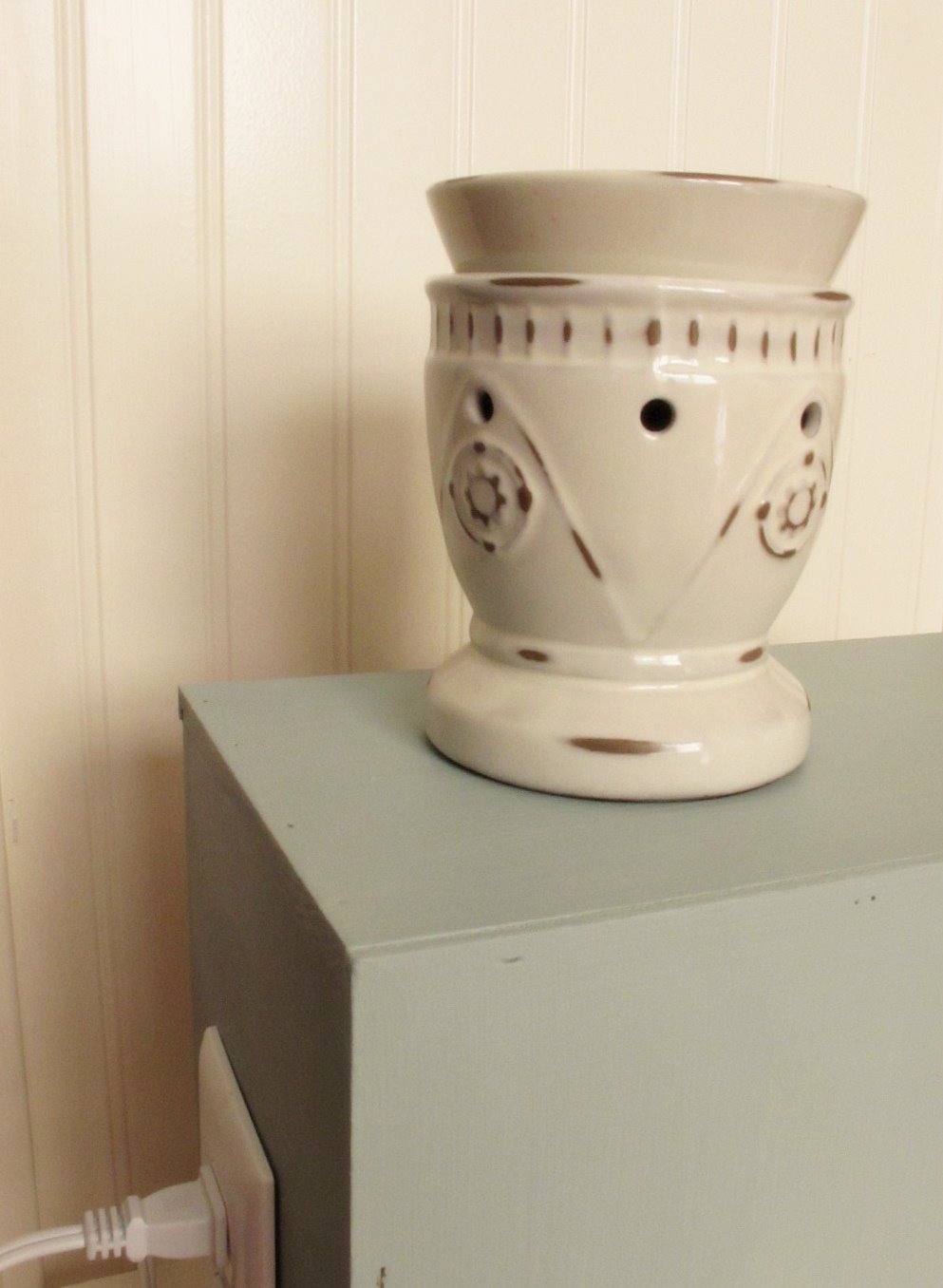 One of my girlfriends is starting up her Sentsy biz and needed a box that would power up multiple warmers. There are a few available online but the price is a wee bit high, so look what the hubs made for her. Isn’t he so sweet!