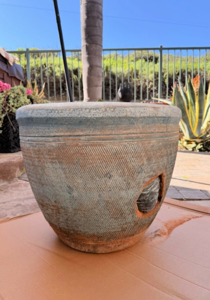 If you’ve ever wandered through garden centers or flipped through a Pottery Barn catalog and admired those gorgeous aged pots with real stone, you’ve probably also noticed the price tag. The good news is that you can recreate the same aged look at home using simple materials. I came across 2 of these planters about 3 years ago at a garage sale. I think I paid $10 a piece, which is a steal. Within two years, one of them began to crumble, and the other has just recently developed a hole on the side. Instead of throwing it away, I decided to save it and give it an aged stone look.
