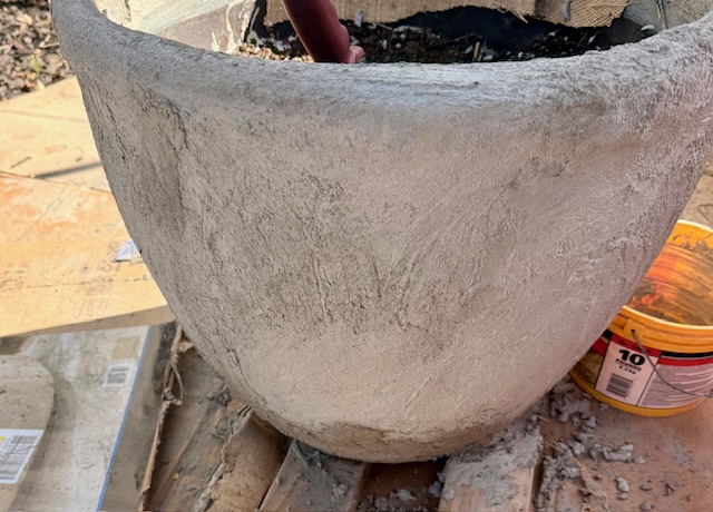 Although this project was not hard, it took a lot of time. A few things I learned along the way and would do differently are practice on a small pot first. Second, if you are going with a large pot, I would work with plastic pots or any plastic planter you already have. They’re lightweight, easy to work with, and once transformed, no one will guess they’re not real stone. This planter now weighs a ton, making it really hard to move on my own. Make sure your flower pots have drainage holes. Lastly, I would have set this up on a table of some sort while working on this. I have a bad back, and this project set me back a little.