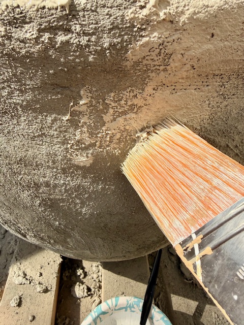 Stir and combine the wet and dry ingredients. Aim for a thick, peanut butter/cottage cheese-like texture. You want the texture to be thick but not runny. My Water-to-mix ratio was 1 to 3 1/2 quick-setting cement to 5 water. Make sure to check your directions. If you add too much water, you can always add more powder.