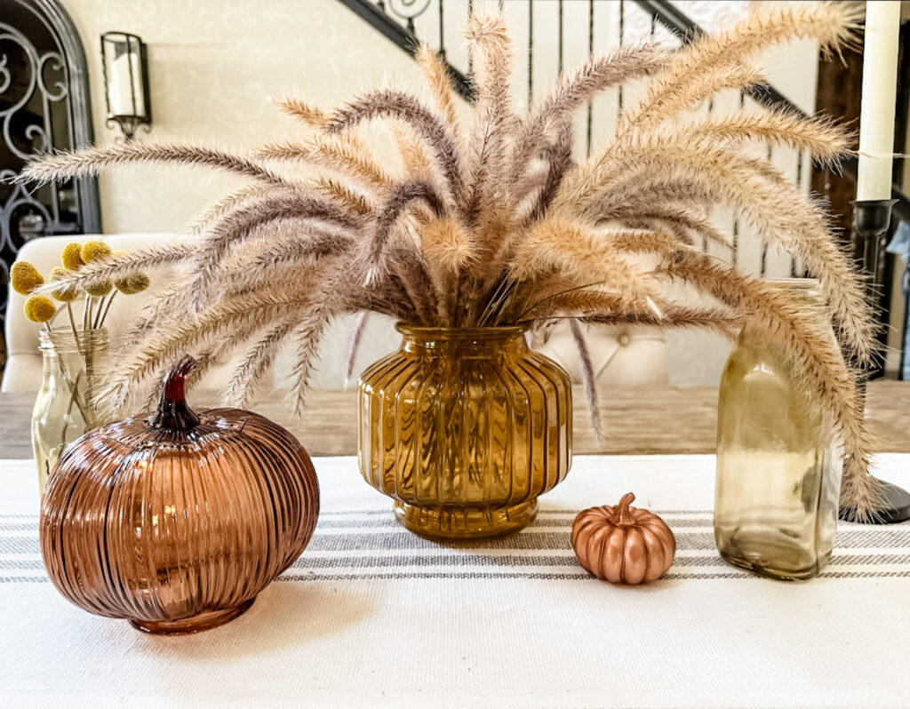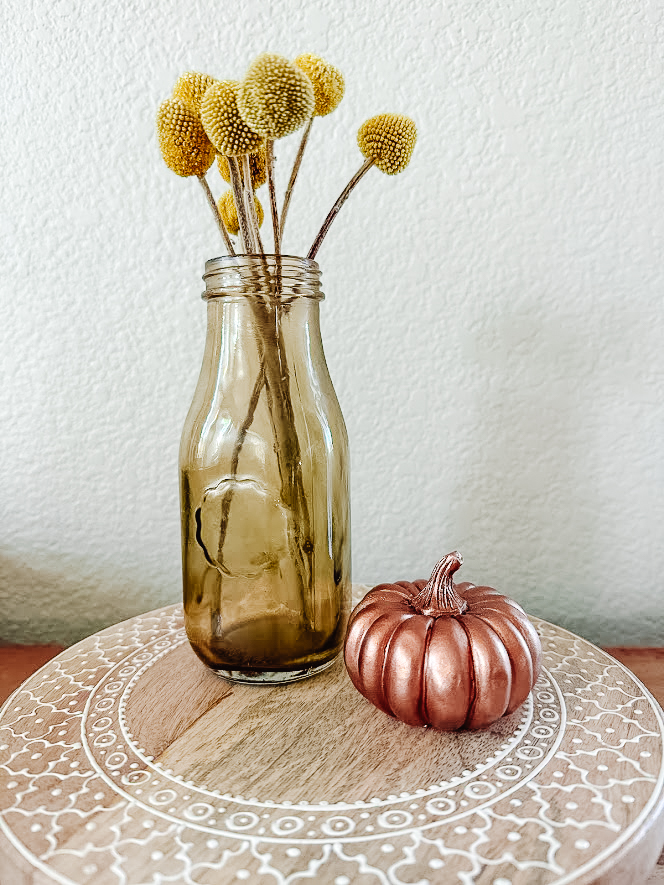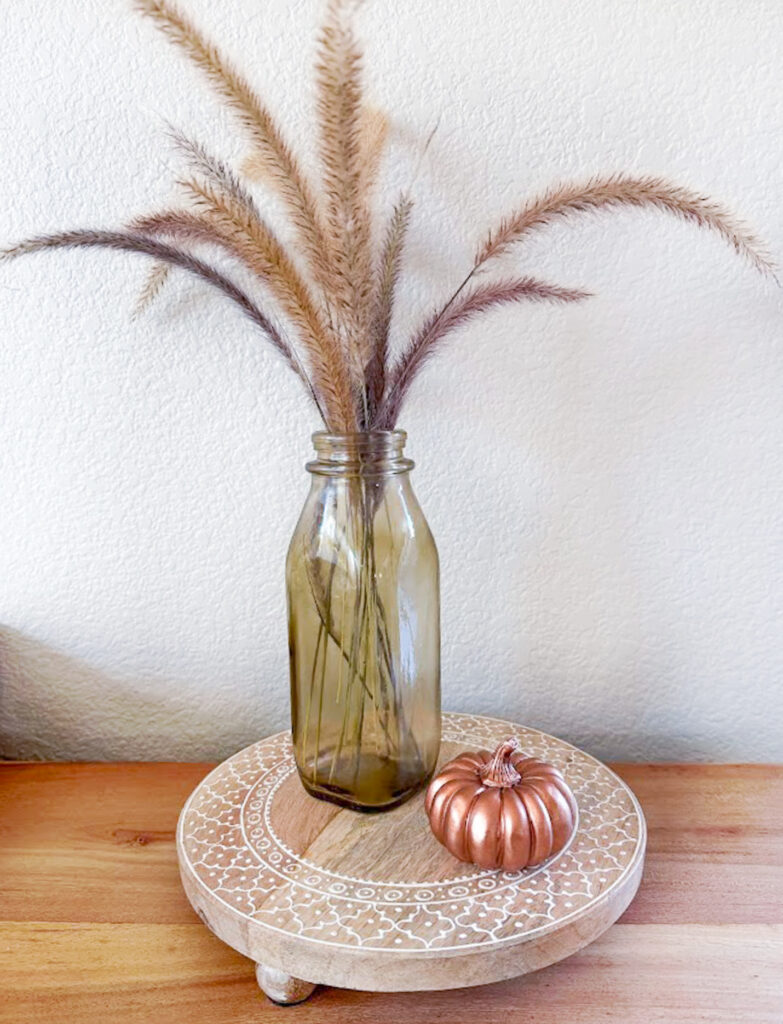 Now that your amber glass pieces are complete, it’s time to display them! They make beautiful additions to fall decor, as their warm hues complement the season’s color palette. You can use them as flower vases, candle holders, and so much more. I love them mixed with my existing amber fall pieces.