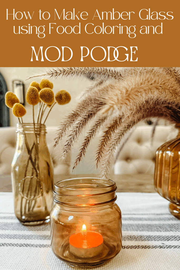 You can transform clear glass bottles and jars into beautiful amber glass decor that will complement any home decor! This DIY project is a great way to achieve the amber jars!