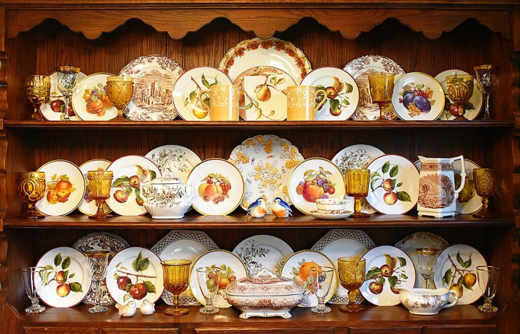 I love how Selep Imaging decorated her hutch for fall using mainly brown transferware and some Bavarian plates.