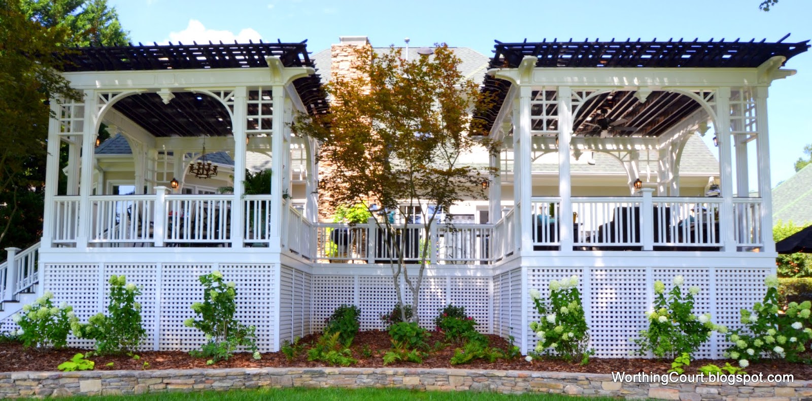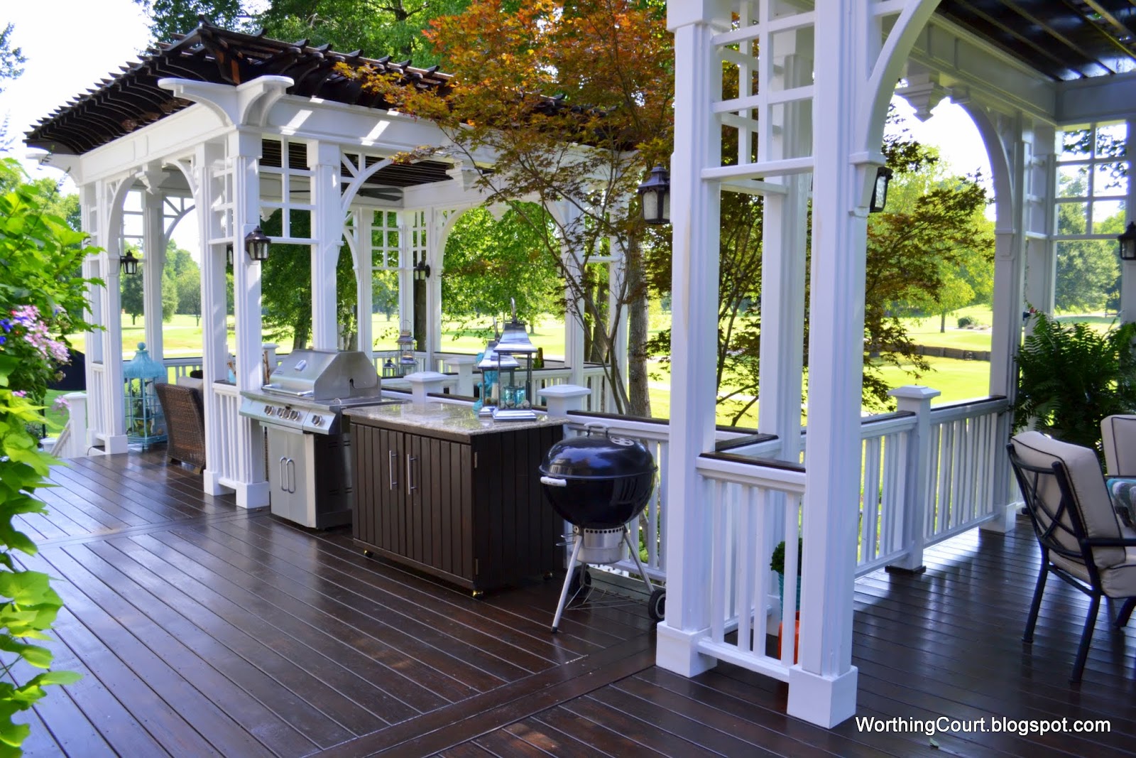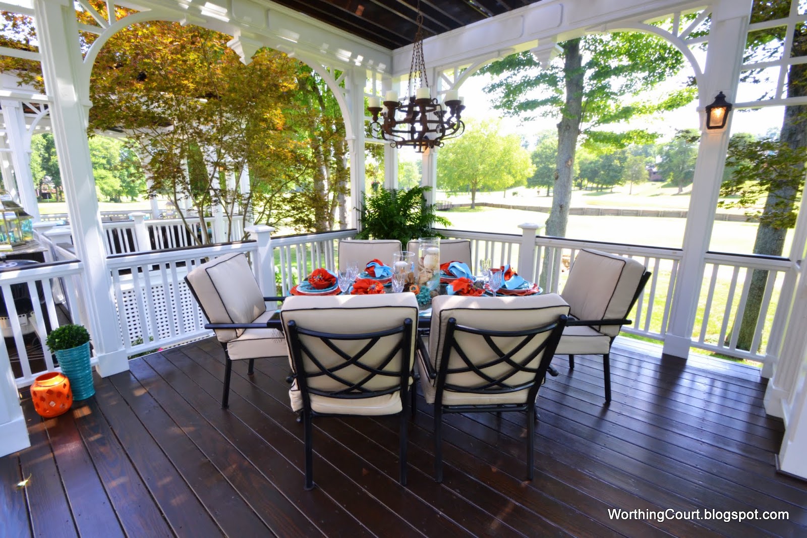 I was getting ready to round up last weeks highlights and decided Worthing Court friends new deck would be the perfect spot to spend the holiday. From the wrap around deck, the relaxing lounging area,the beautiful brick, gorgeous table setting and the stunning grill area I could stay here all day!
